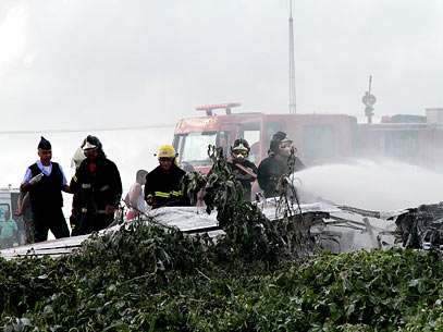 De acordo com as primeiras informações, a avião pegou fogo após chegar ao solo. Logo após a decolagem, com quatro minutos de voo, o piloto teria informado à torre de controle que estava com problemas e que faria um pouso forçado.